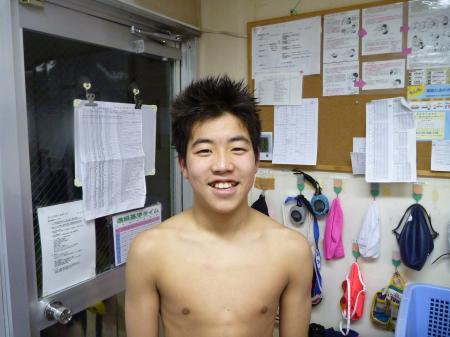 中務 貴文 君 倉敷北中学 2年 100m平泳ぎ ジュニアオリンピック突破