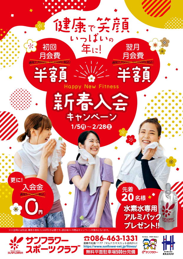 サンフラワースポーツクラブは、 エアロビクス、ヨガ、腰痛改善体操など、スタジオプログラムの他トレーニング器具を完備しています。運動後は、マッサージルームや、ジェットバス、サウナでゆっくりと疲れを癒してリラックスしてください。