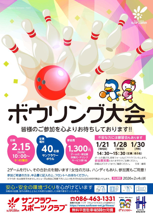 サンフラワーは倉敷市中庄のスポーツアミューズメント総合施設です。ボウリング、スポーツクラブ、スイミングスクール、カラオケスタジオを取り揃え皆様をお待ちしております。