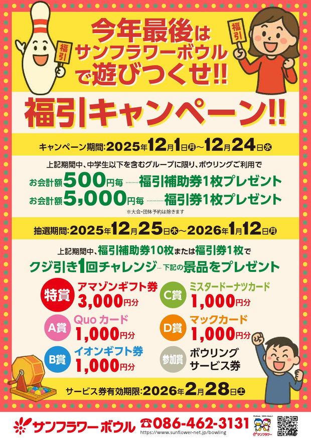 大人はもちろんお子様にも一緒に楽しんでいただけるようにガター防止レーンを完備した家族で楽しめる倉敷市中庄のボウリング場です。 また、子供会などのイベントや、50歳からご入会いただけるハッスルクラブなどみんなでわいわいと楽しんでいただける様々なプランを取り揃えております。