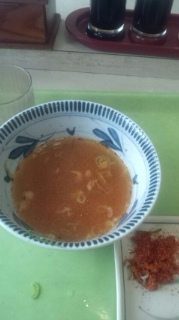 だしがキムチスープみたいになりましたそして取り除いた七味も一緒に