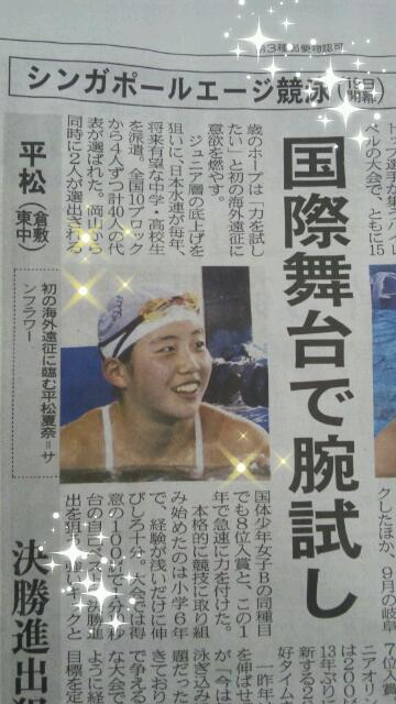 昨日の山陽新聞朝刊に、我がサンフラワースイミングスクールの平松夏奈選手の記事が載っています