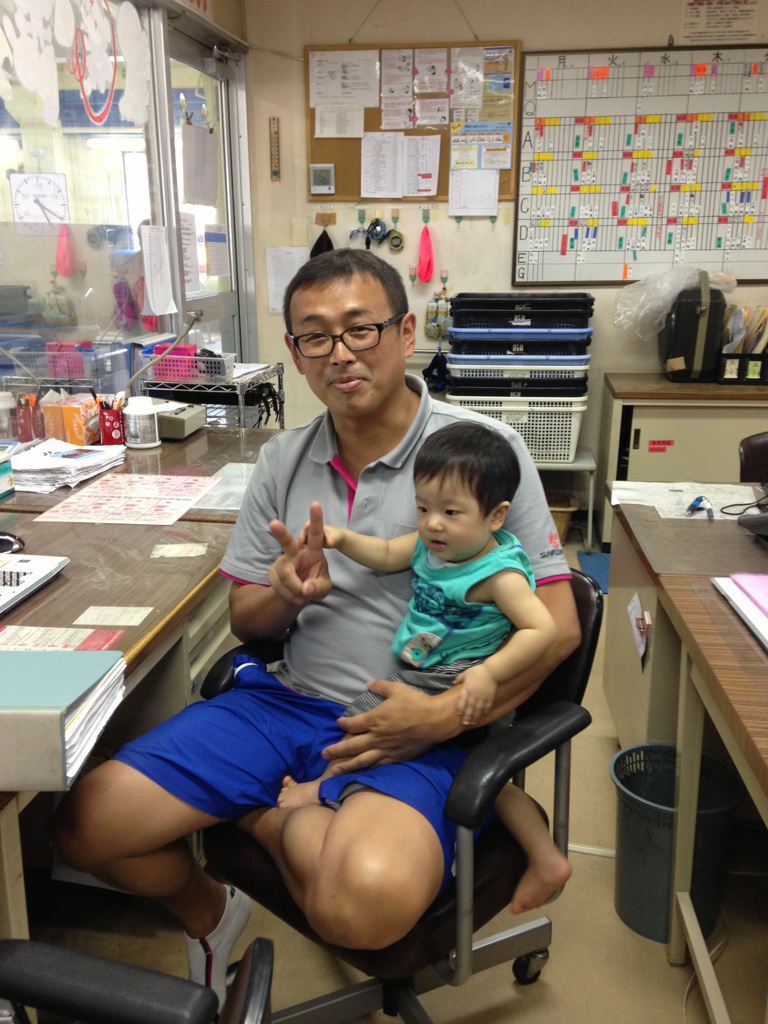抱っこされている赤ちゃんは元フロントスタッフの村上コーチの第一子です