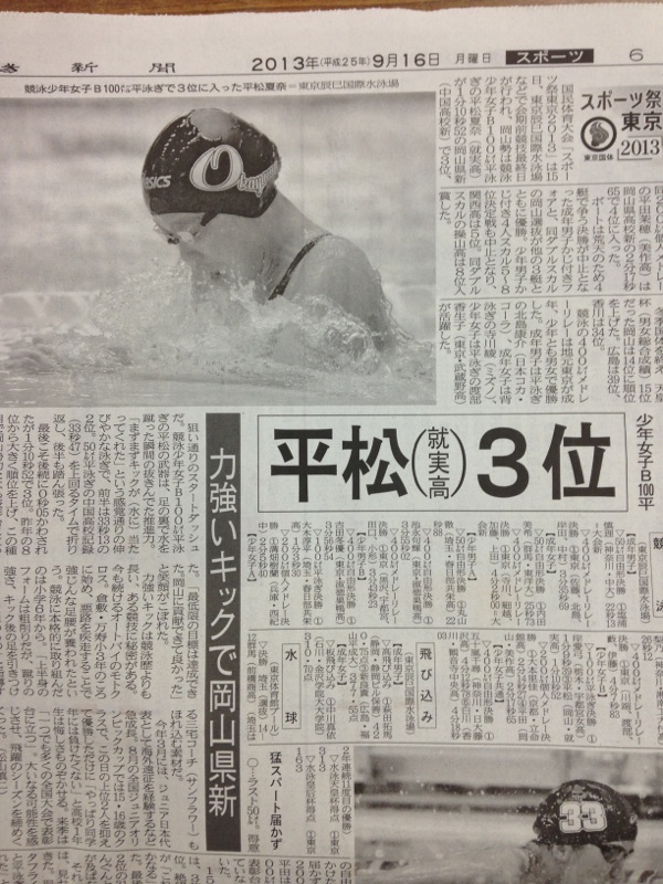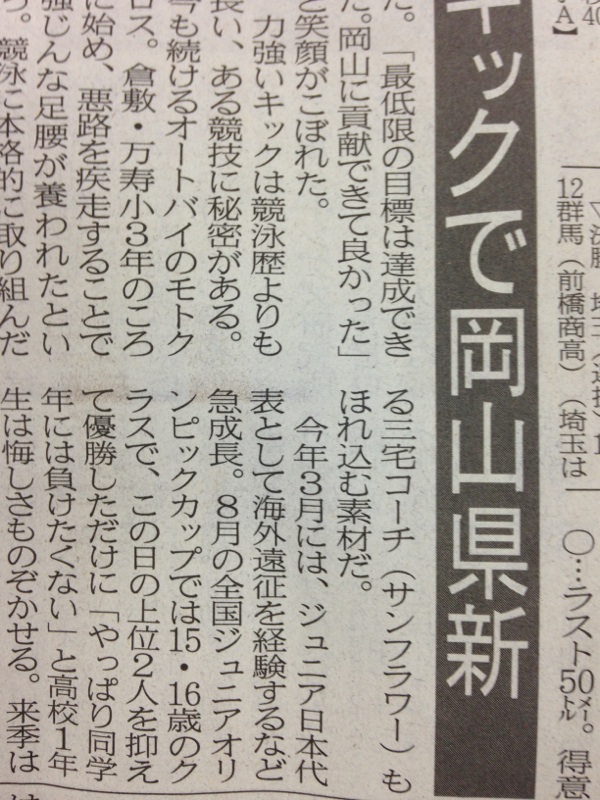 新聞の記事に「三宅コーチ」の名前が載ってしまいました
