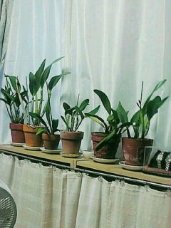 外に置いていた鉢を部屋に取り込み、窓辺に