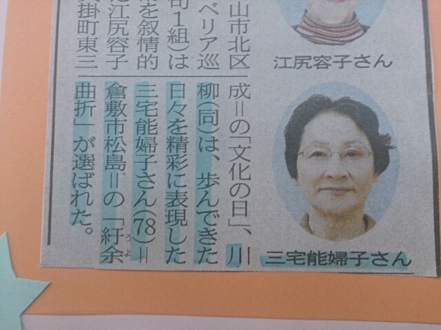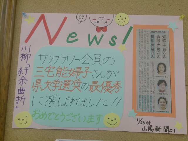 で、最優秀にあたる入選に会員の三宅能婦子さんが選ばれました!!