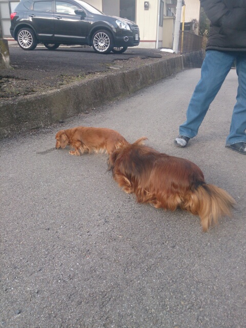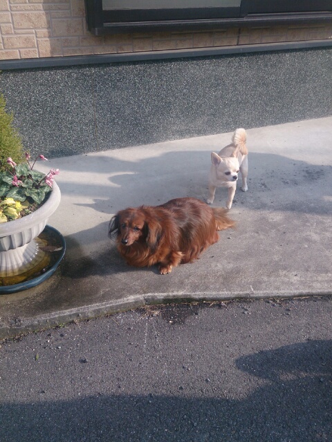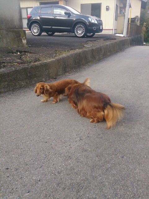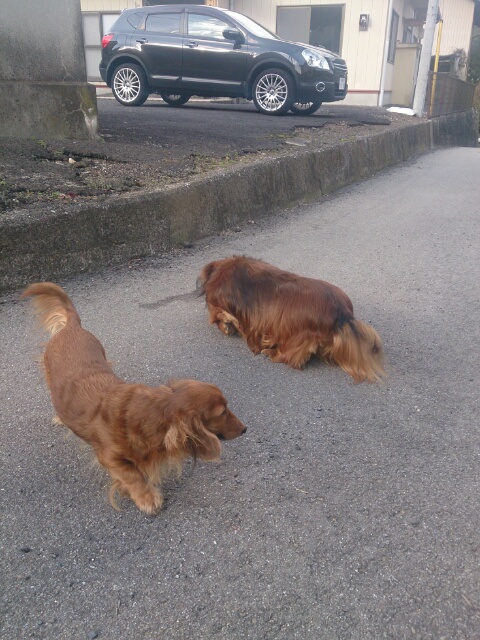 同じダックスとして友達になりたいようですが細いスリムなダックスはバフィーのことを仲間と思っていないみたいでずっと逃げ回っていました(笑)