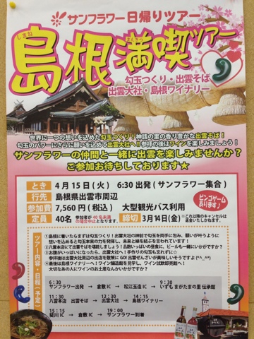 日帰り旅行の「島根満喫ツアー」