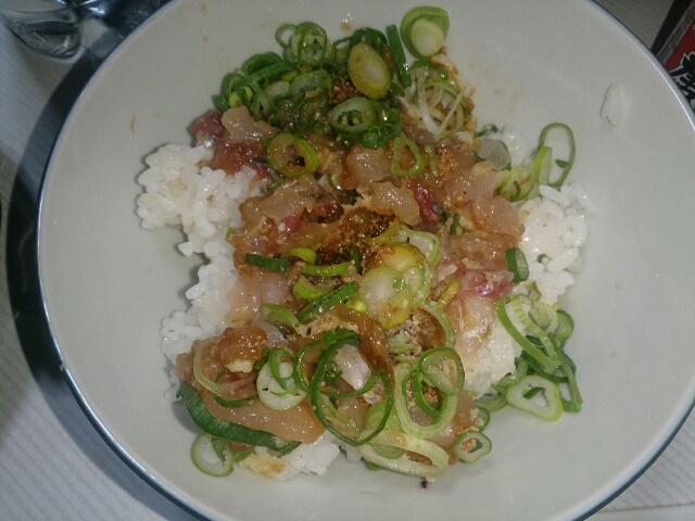 それを包丁で叩いてネギやおろししょうが、醤油、酒、すりごまなどで