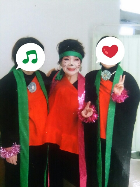 このような楽しい出し物を練習し、介護施設などへ慰問に