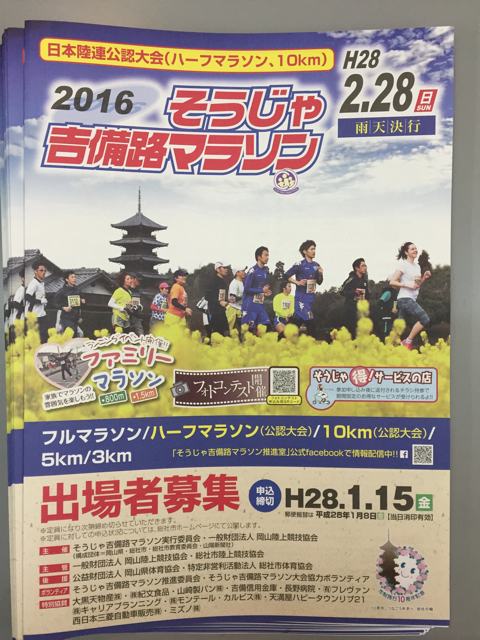 今日は sunflower 10年前 こんにちは 今日は文化の日です 祝日ですので 本日の営業は20時までとなります ひるぜんマラソンが無事に終わり いよいよ今週の日曜日に岡山マラソンが 開催されますね そして 来年2月に開催される 吉備路マラソンの申し込み用紙が サンフラワーに届きました 欲しい方はご自由に お持ち帰りください ただし 枚数に限りがありますので 欲しい方はお早めに 実はこの申し込み用紙・・・ 表紙の写真に サンフラワーの会員さんが写ってます ぜひ見てみてください