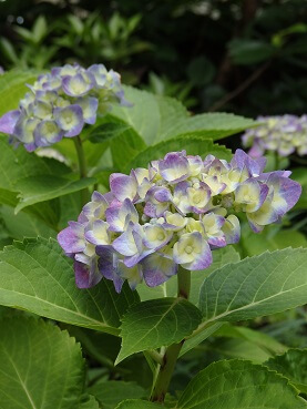 我が家で2株のみ 青っぽい色で咲くアジサイ。