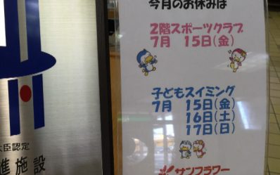 おはようございます 本日は15日のため スポーツクラブ・スイミン...