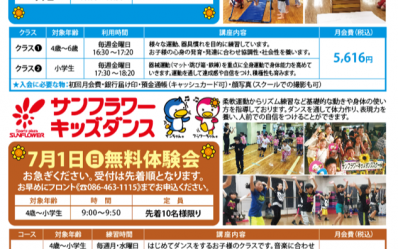 サンフラワースポーツクラブでは、 6/1(金)より、体育教室・キ...
