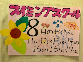 こんにちは 時々登場の HARUKAです 毎日 暑すぎですが 体調など崩されていませんか 私は、「夏バテ防止」と、 言い訳しながら、暴飲暴食 な日々を送っているので、今日も元気いっぱいです(笑) さて、 8月よりフロントに、 new faceが仲間入りしました 梶谷 瑞歩 さんです よろしくお願いします スイミングスクールは 8月11日~17日がお休みになりますので ご注意ください それでは今日はこの辺で。。。 また、時々~