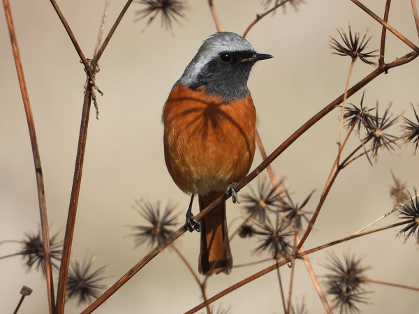 冬鳥 ジョウビタキのオス。鮮やかな色です。