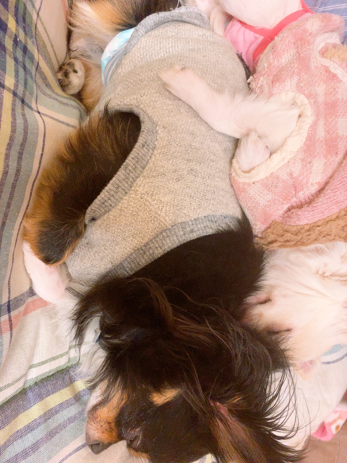 お兄ちゃんの背中で寝るのが大好きなこむぎちゃんでした(^^♪