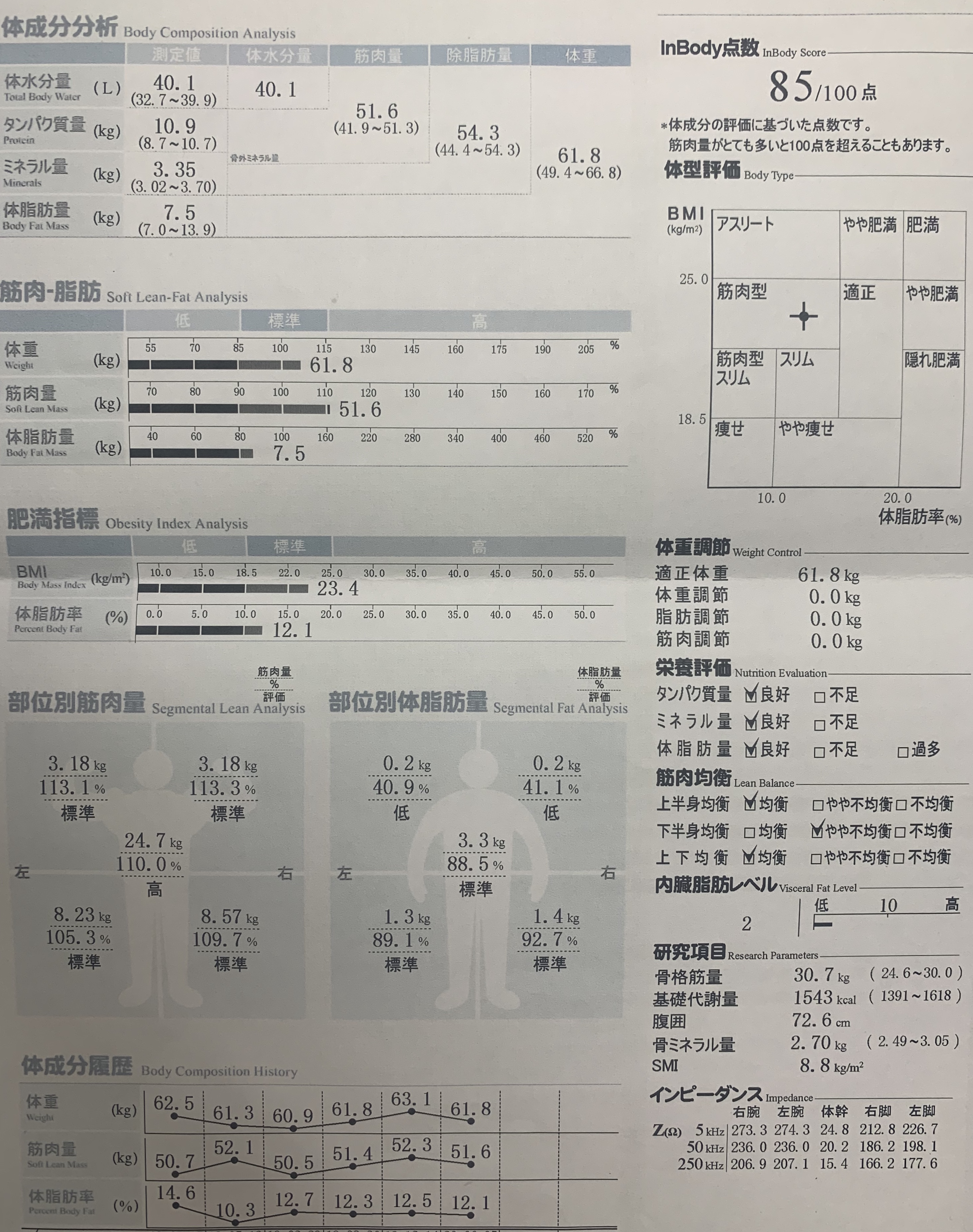 インボディーを測ってみたのですがこんな感じです!
