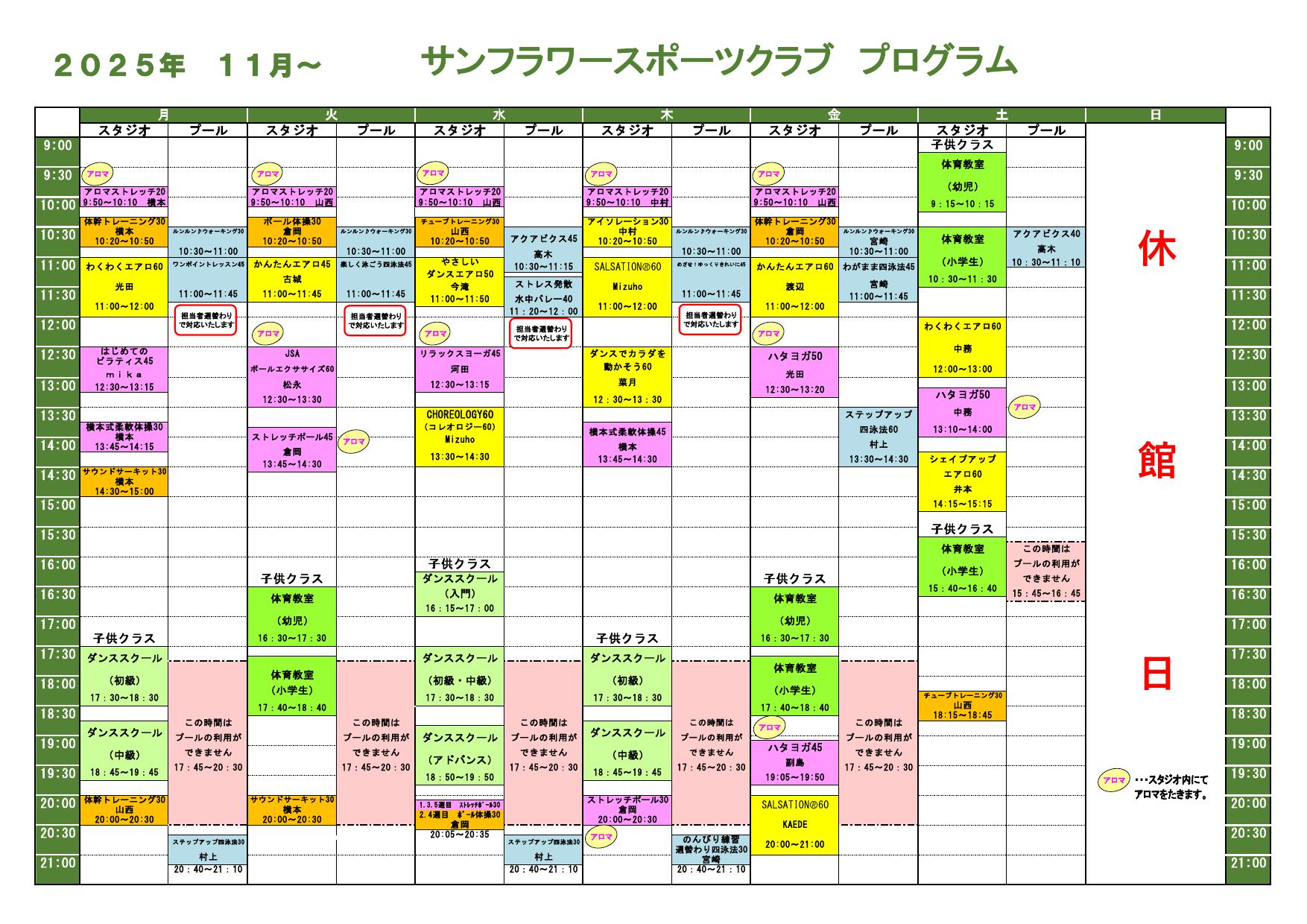 会員様ですと、スタジオプログラムやプールプログラムも無料でご利用いただけます。