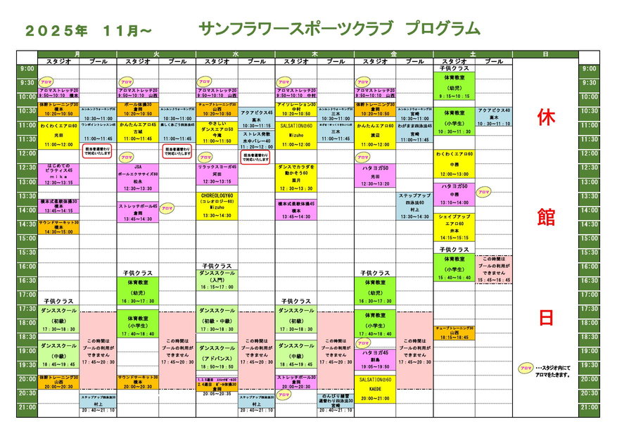 スタジオプログラムやプールプログラムも無料でご利用いただけます。