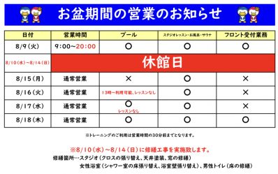 お盆期間の営業のお知らせです✎ ・8/9(火)…2...