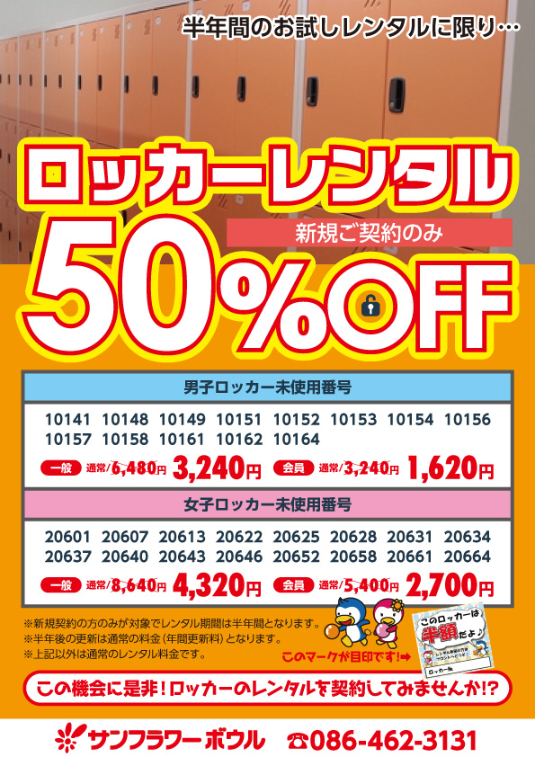 新規契約のチャンス!ロッカーレンタル50%OFFキャンペーン