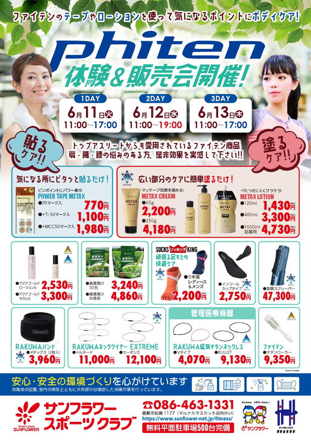 サンフラワースポーツクラブ phiten(ファイテン) 体験&販売会 開催! 6月