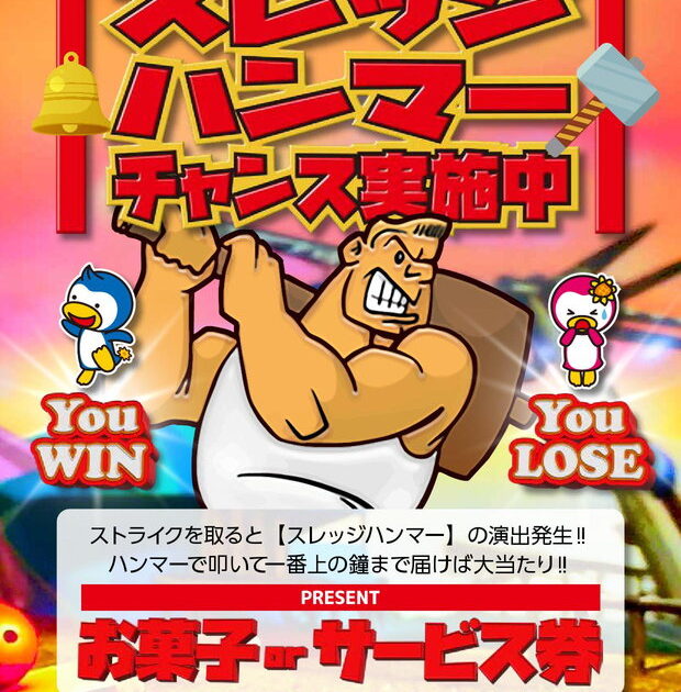 サンフラワーボウルで、ストライクを取るとミニゲーム「スレッジハンマー」が始まります。