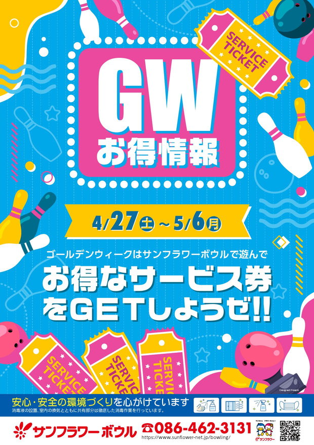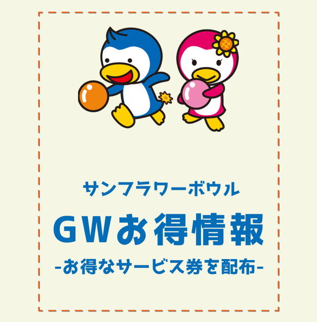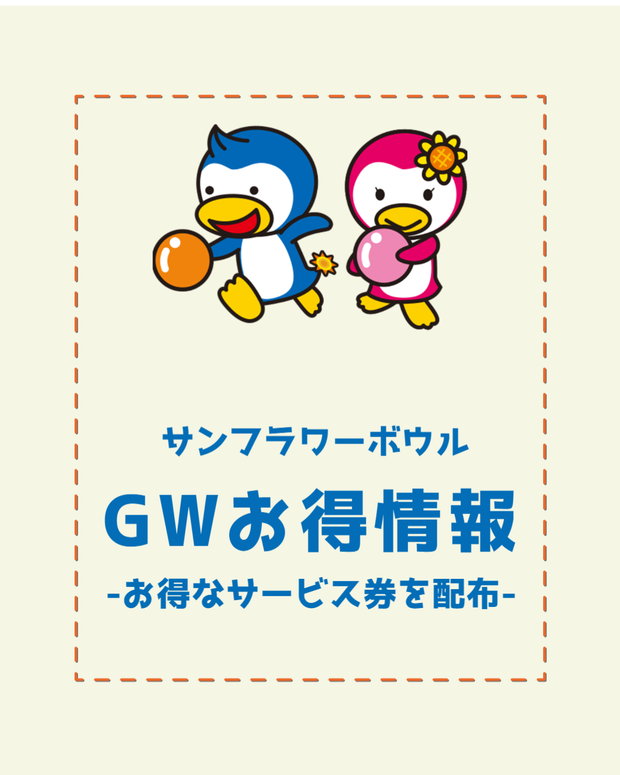 ゴールデンウィークはサンフラワーボウルで遊んで、お得なサービス券をGETしよう!