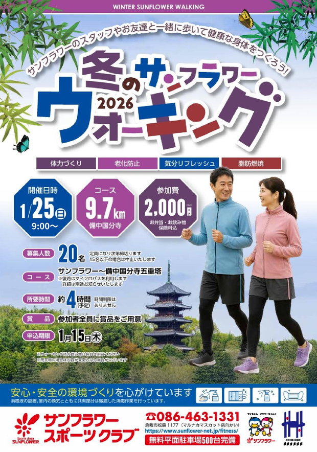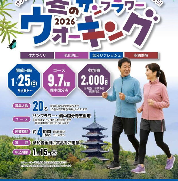 冬にサンフラワーウォーキング2026に参加される方を募集中です。