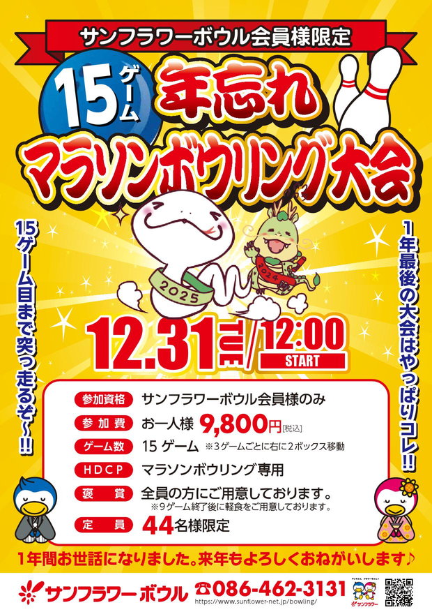 サンフラワーボウル 年忘れ 15ゲーム マラソンボウリング大会!!