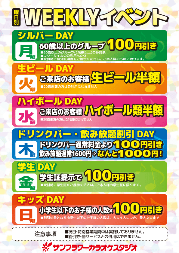 毎日お得なウィークリーイベント開催中!!