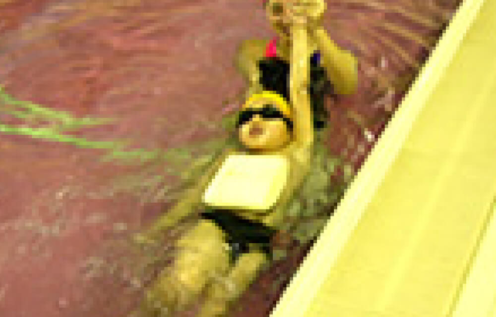 腰に浮き具(ヘルパー)をつけ、泳ぎを楽にマスターできます。